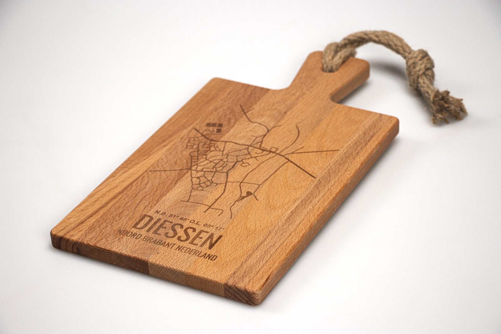 Deze borrelplank is perfect voor borrels, diners en als decoratief item in de keuken. Gemaakt van stevig beukenhout en voorzien van een fijne gravure. Verkrijgbaar in diverse rechthoekige en ronde formaten, allemaal inclusief handvat en gravure. Het touw is optioneel bij te bestellen voor een meerprijs van €1. Een persoonlijk en stijlvol cadeau voor elke gelegenheid.