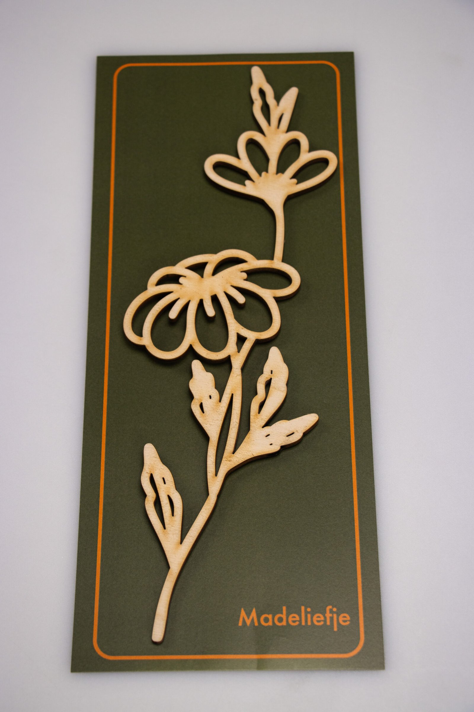 De madelief staat voor puurheid en onschuld. Een tijdloos ontwerp van multiplex 3mm dat zorgt voor een lichte en vrolijke uitstraling. Afmeting circa 27 x 10 cm.